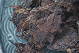 The tea has a very pleasant camphor wood fragrance. The first few infusions are soft, smooth camphor wood aromas with stimulating response. As the camphor taste reduces in later infusions, a nutty dry fruit taste appears together with comfortable and lingering cha qi. The old leaves show its strength with continuous multiple infusions of rich drinking pleasures. Infused tea leaves are soft but thick, brown leaves 8th grade and above with no branches.